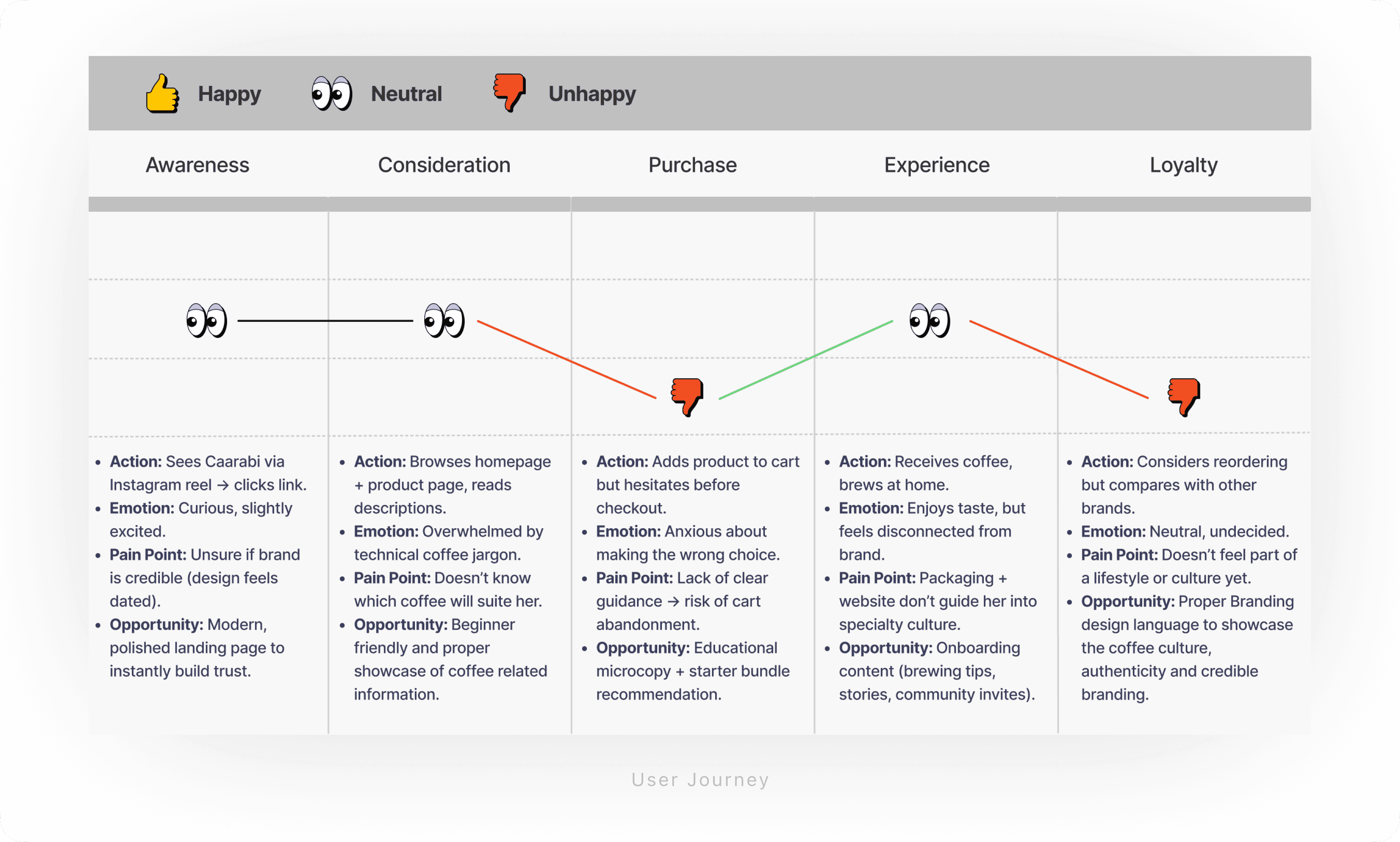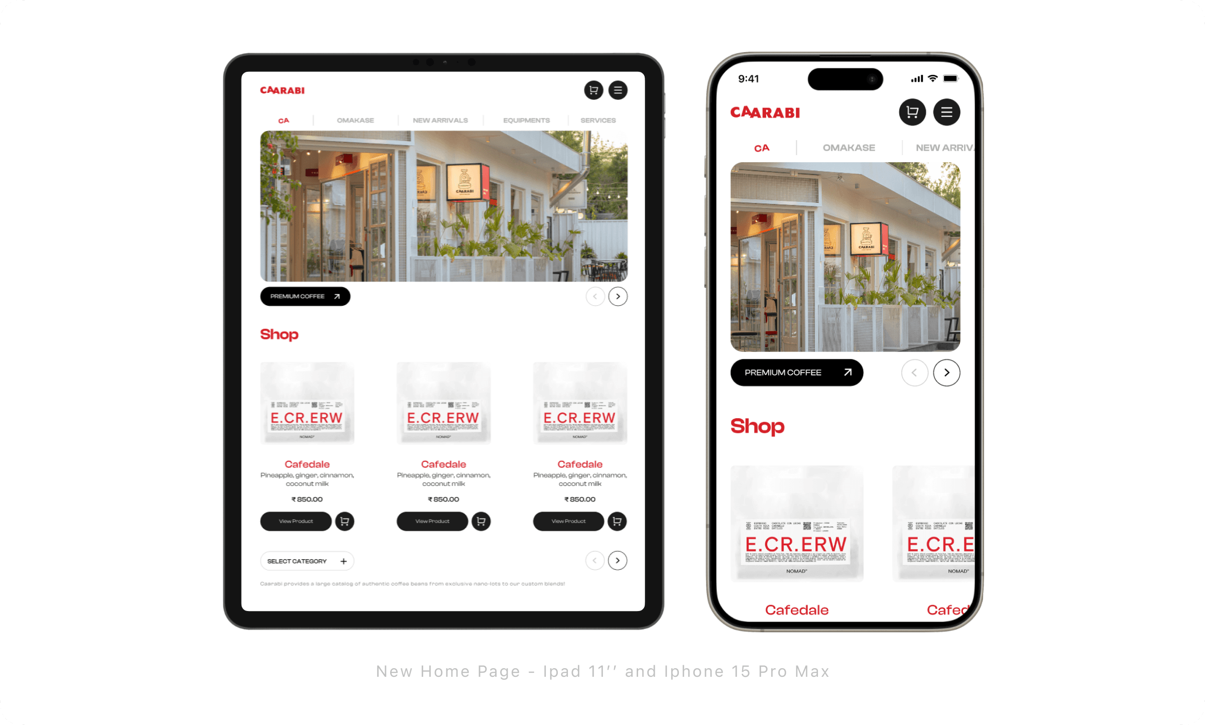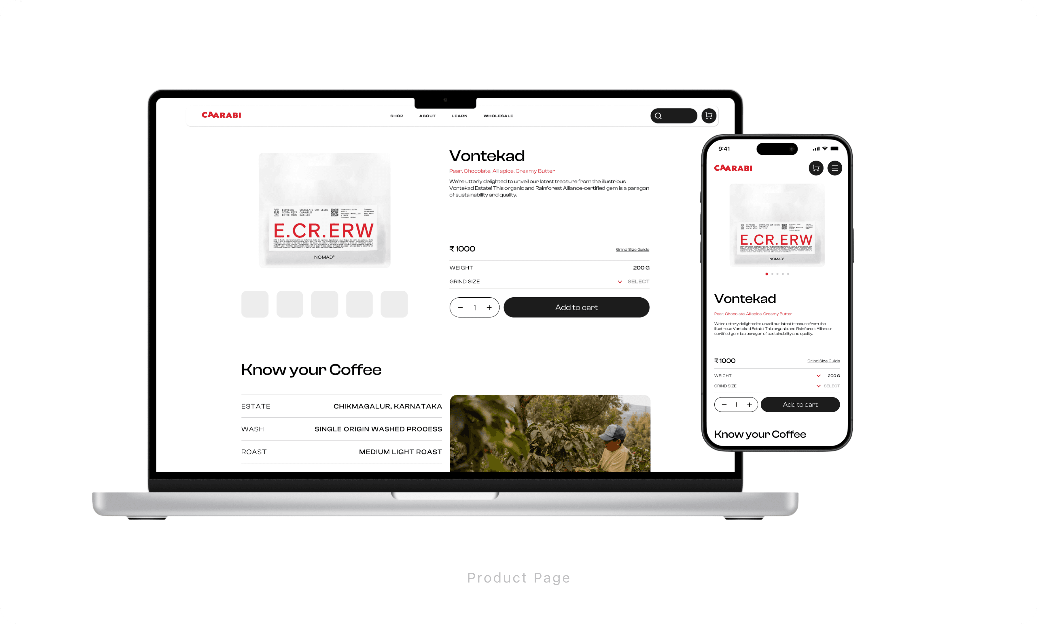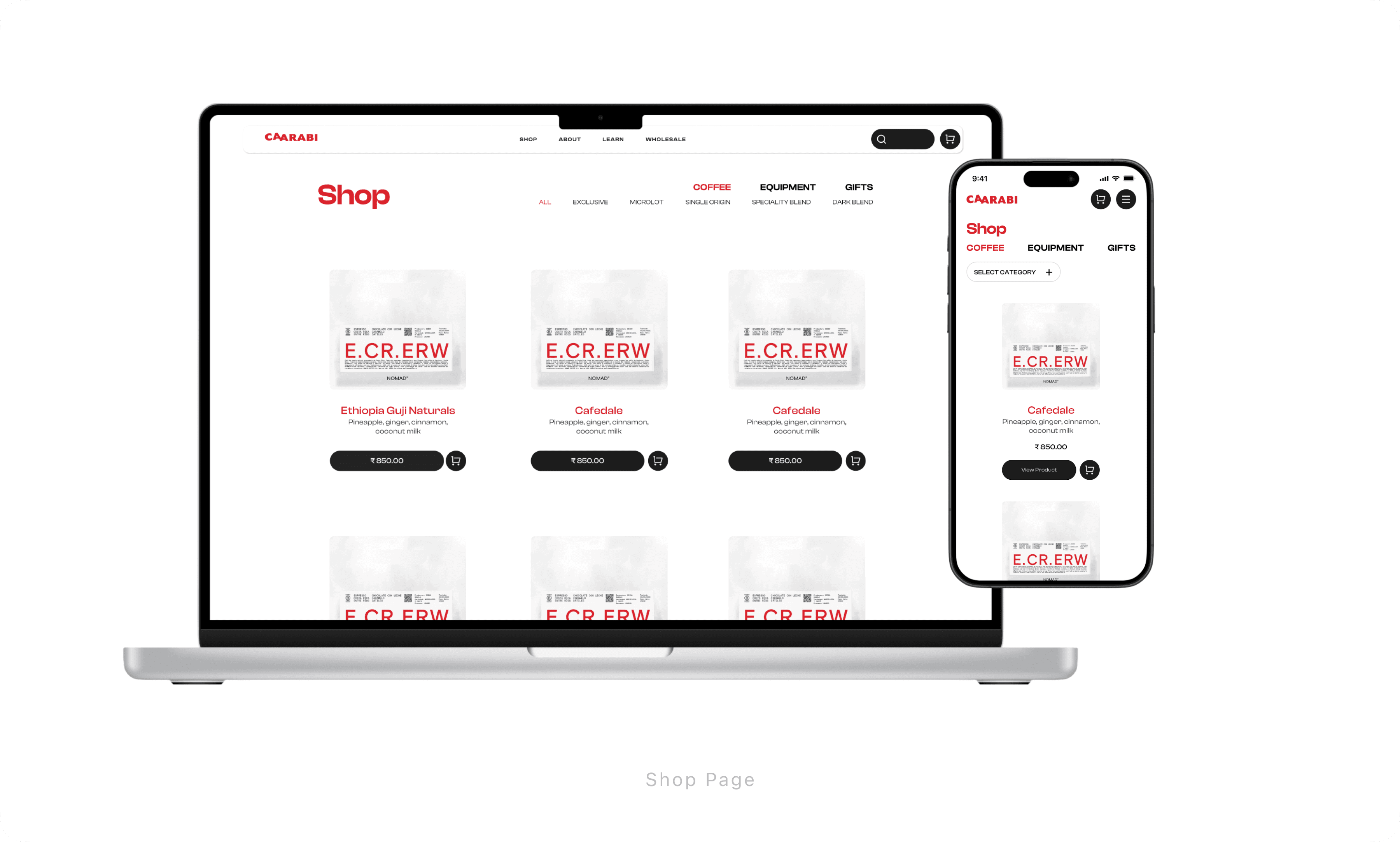 Caarabi’s generic Shopify site lacked the visual credibility of its premium specialty coffee. A cluttered, template-based UI created a brand disconnect, leading to low consumer trust and a poor digital experience for connoisseurs.